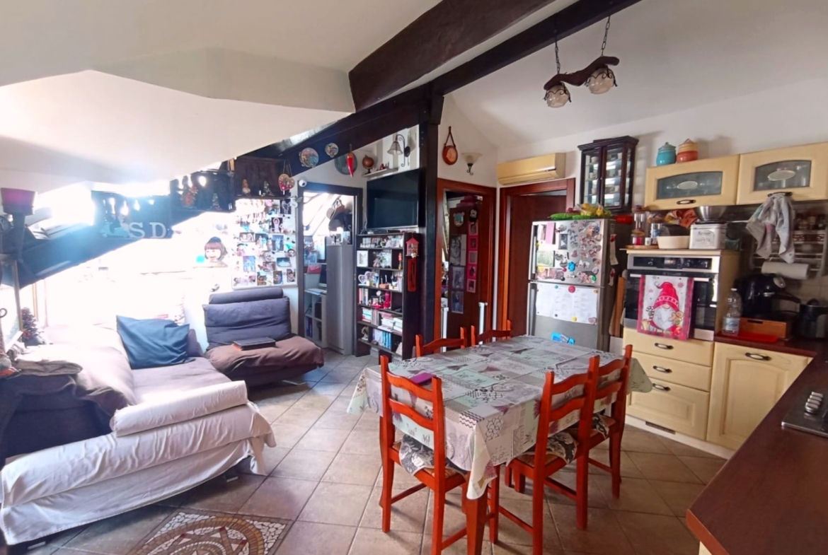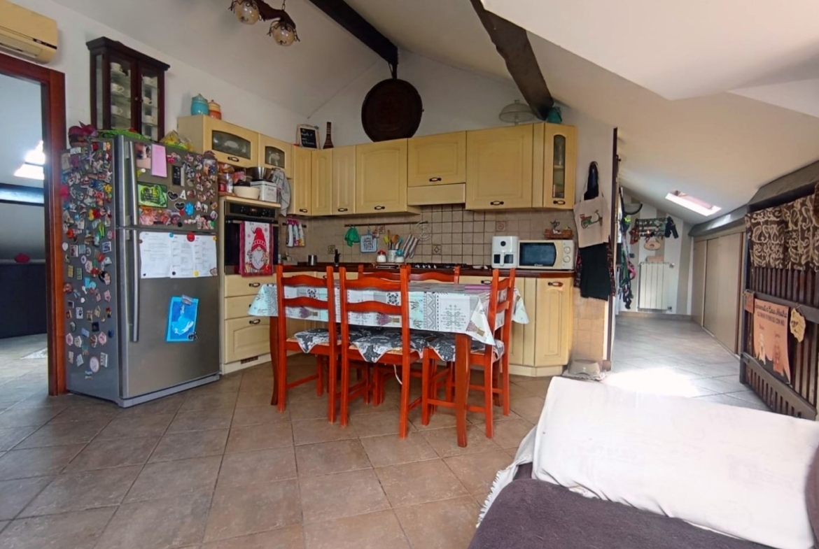APPARTAMENTO MANSARDATO, COMPOSTO DA INGRESSO IN CORRIDOIO, SOGGIORNO CON CUCINA A VISTA, 2 CAMERE DA LETTO, BAGNO, AMPIO TERRAZZO E POSTO AUTO DI PROPRIETA’.