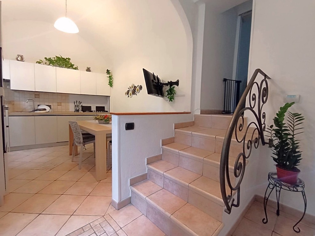 APPARTAMENTO INDIPENDENTE, DISTIBUITO SU TRE LIVELLI E COMPOSTO DA INGRESSO IN DISIMPEGNO, CUCINA ABITABILE, SOGGIORNO, 2 CAMERE DA LETTO, DOPPI SERVIZI, VANO FINESTRATO AD USO RIPOSTIGLIO, AMPIO TERRAZZO IN PARTE COPERTO E CANTINA.