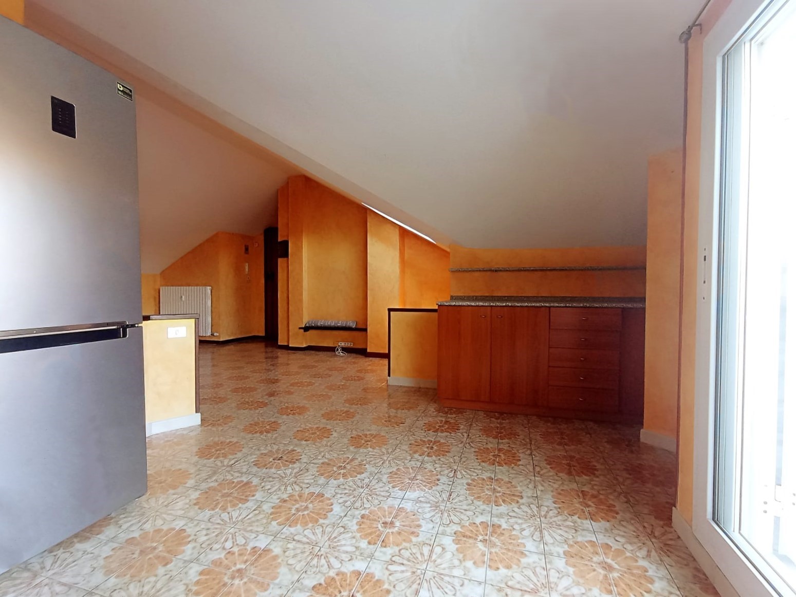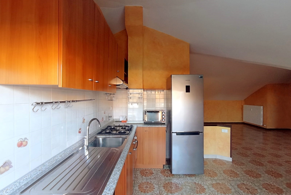 In una piccola palazzina immersa nel verde, comoda al centro e a tutti i principali servizi, al terzo piano con ascensore con una piccola rampa di scale per arrivare all’ingresso, è un ampio bilocale mansardato alto e quindi vivibile con un terrazzo al quale si accede tramite la ampia zona giorno. Le condizioni generali sono ottime e l’immobile è molto luminoso e areato con una bella vista aperta. Il bagno ha il box doccia. Il riscaldamento è centralizzato a consumo