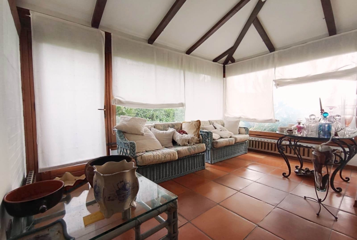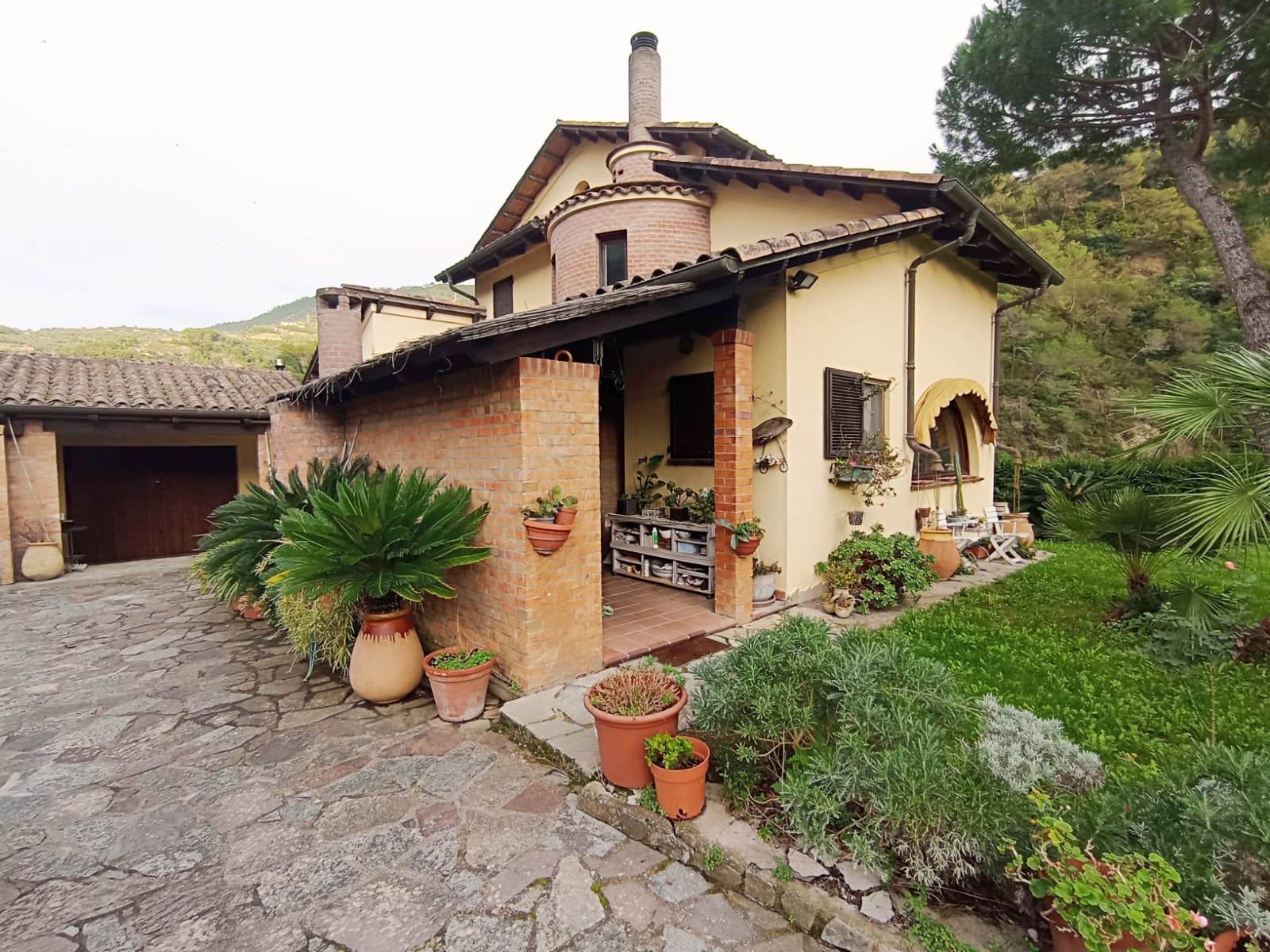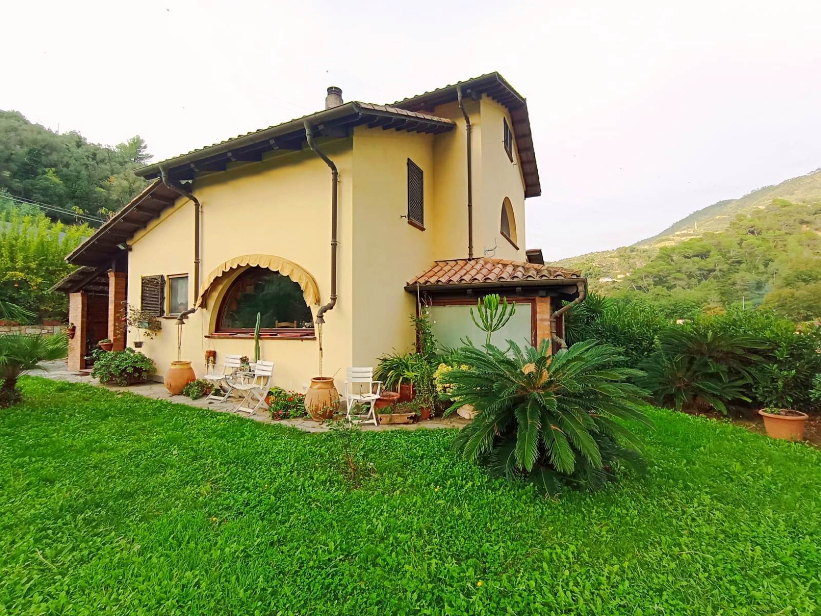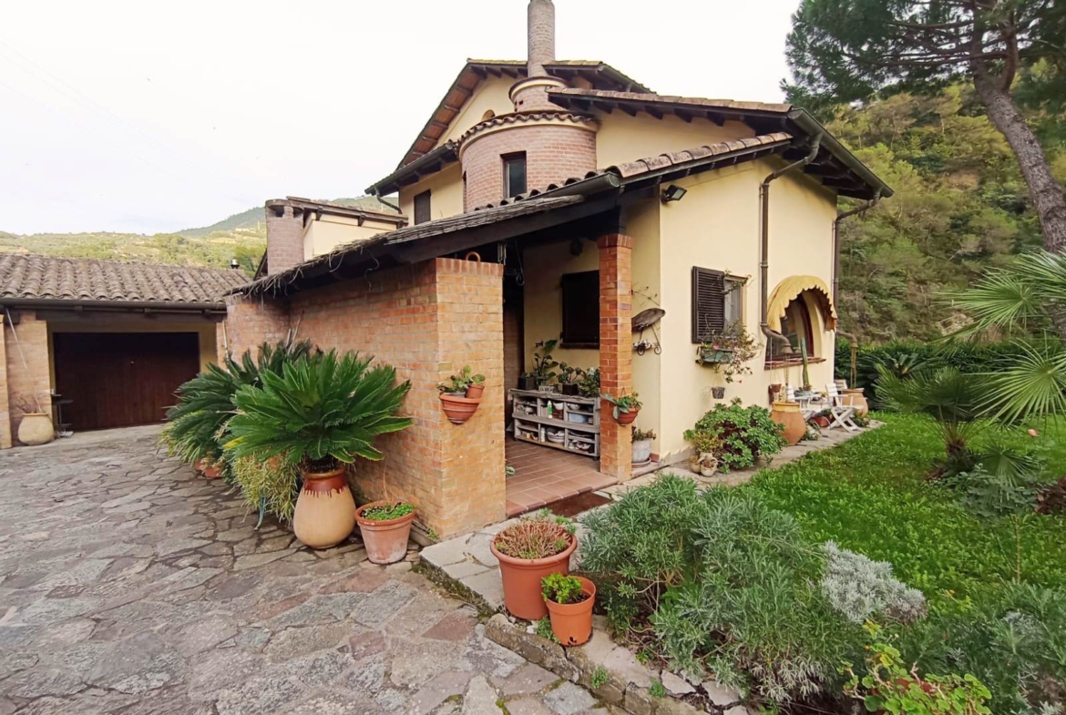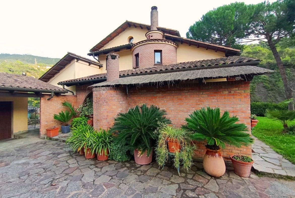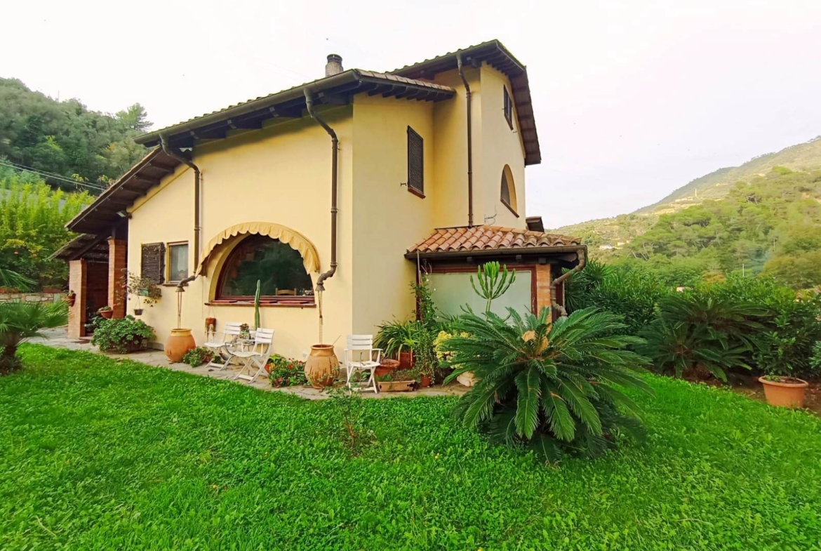 E’ una villa molto soleggiata, di ampia metratura e riscaldata da una caldaia a pellet collegata ai radiatori. Si presente in ottime condizioni sia interne che esterne, con rivestimenti e tinteggiature omogenei, bagni finestrati, scale di collegamento racchiuse all’interno di torrette in mattoni rossi in stile medievale e infissi su misura con ampie vetrate che si affacciano sul giardino, per creare un ambiente luminoso e che si integri armoniosamente con la zona esterna. Quest’ultima è molto ben curata, debitamente recintata e si sviluppa tutta attorno all’abitazione. La proprietà si trova vicino al centro del paese ed è facile da raggiungere in quanto situata nei pressi dalla strada provinciale. Soldano è un piccolo borgo medioevale dell’entroterra ligure, a pochi km dal mare. (Rif. A871)